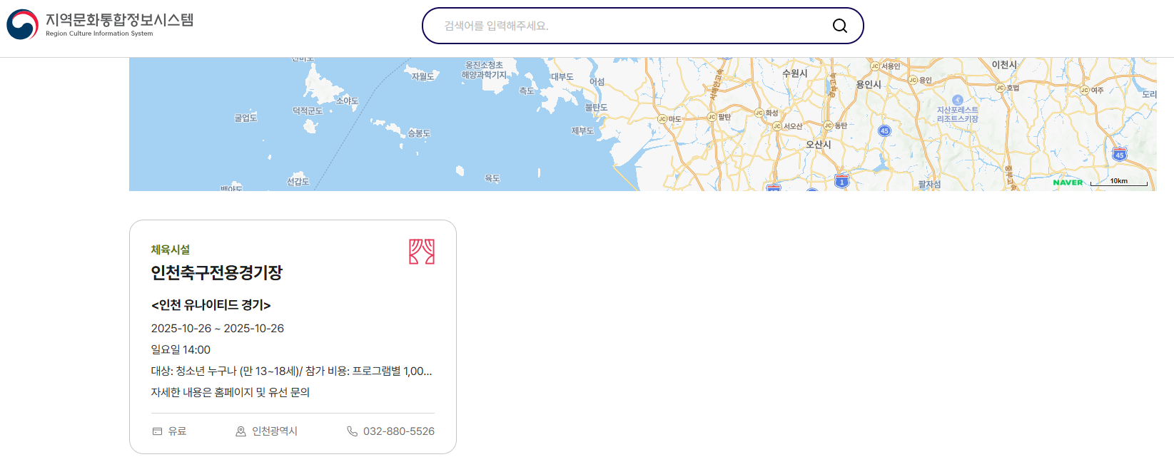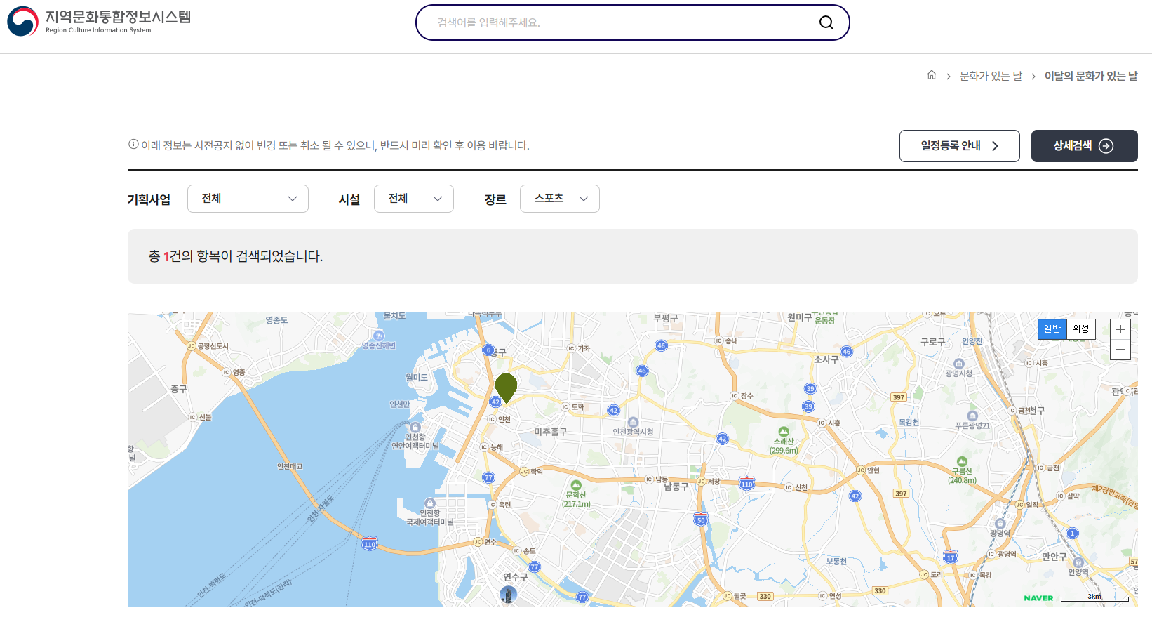 이달의 문화가 있는 날을 누르면 위치 기반으로 쉽게 검색이 가능합니다.