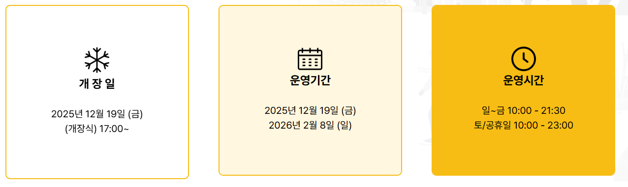 운영 기간은 2025년 12월 19일부터 2026년 2월 8일이며, 매 시즌 공식 홈페이지를 통해 공지됩니다.